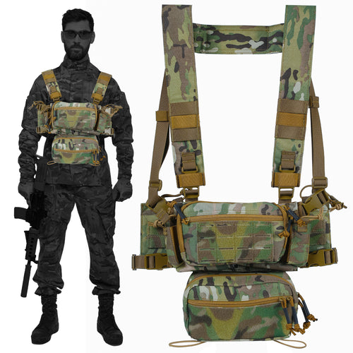 Houseables Airsoft Chest Rig, Molle Vest, FLC, Multicam Chest Rig, Load Bearing Vest, Army FLC, H Harness, Smersh, LBV, SMG, Micro, Mag, Tactical Pack for Hunting, Military, Magazine, Ammo, 5.56/7.62