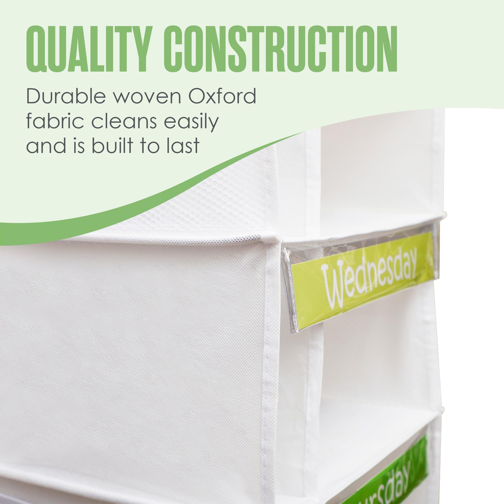 This six cubby, hanging clothes organizer, an ideal solution for hanging closet organizers and storage, fits perfectly in many home closets, adding significant extra space. It serves as a daily clothes organizer kids, a weekday clothes organizer for kids, and an outfit organizer for week. This organizer excels as a day of the week clothes organizer for kids and a closet organizer for kids, making it versatile for various organizing needs. It features hanging shelves closet functionality. . . Show More...