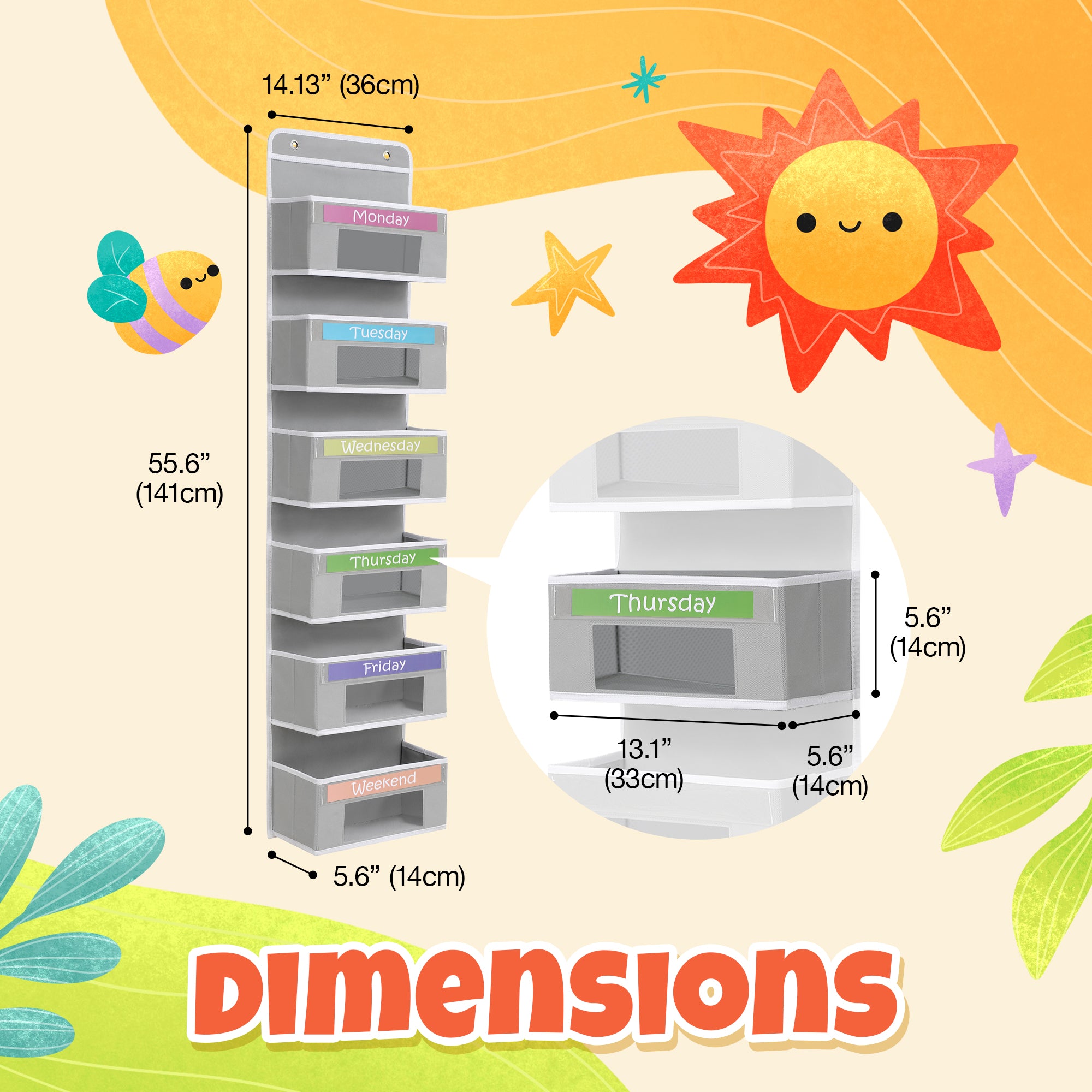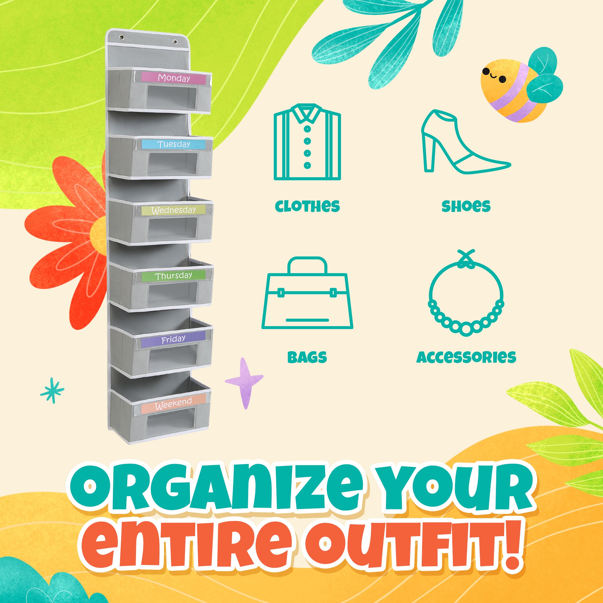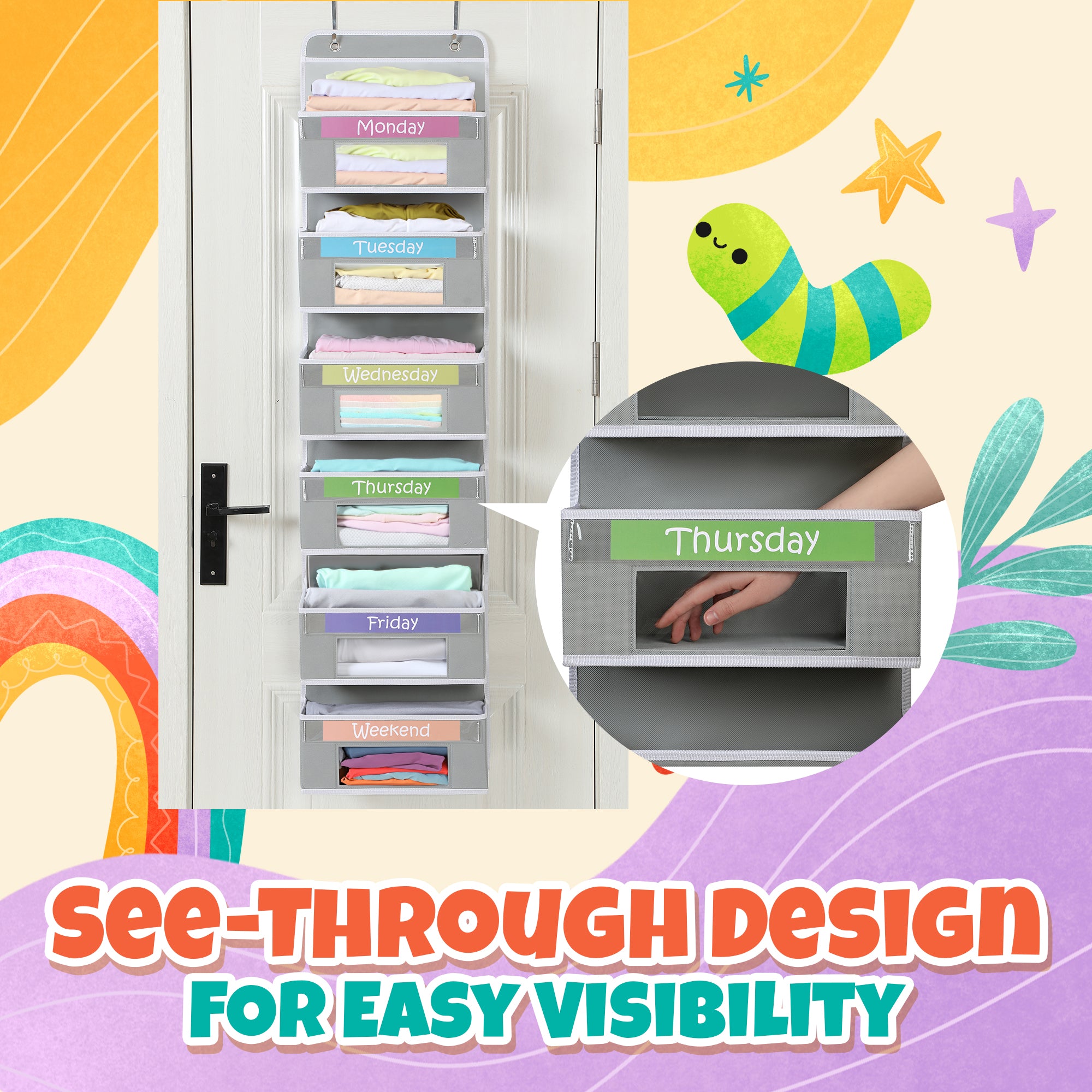 COLORFUL DAY LABELS - This kids weekly clothes organizer comes with six day-of-the-week labels, making it great for use as a daily outfit organization. Effortlessly plan outfits ahead, ensuring a seamlessly organized wardrobe that simplifies daily routine.