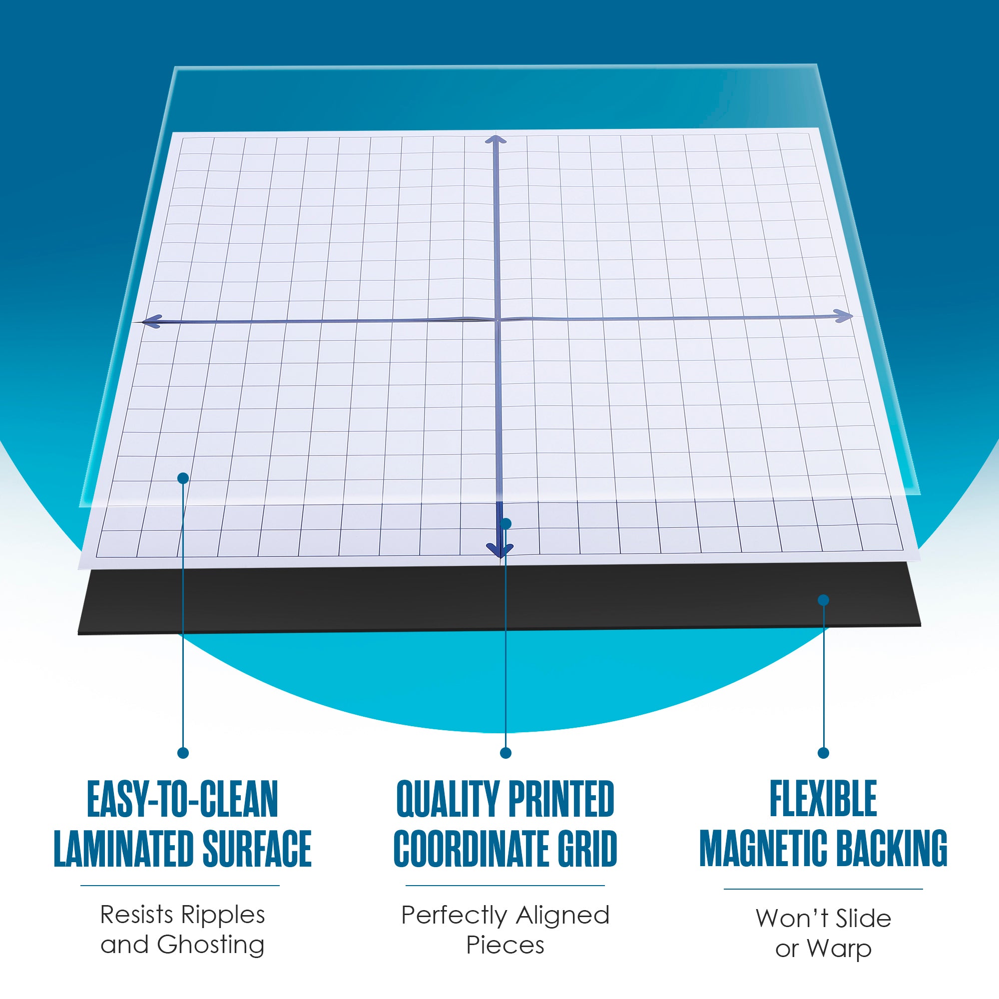 Say goodbye to messy and uneven lines, and hello to a perfectly organized grid board that enhances your productivity. Our dry erase board with lines comes in four detachable pieces, each measuring 13”x13”. This feature makes sharing the magnetic graph for whiteboard with others easy and convenient, especially for mobile tutors who need to transport their teaching aids. The laminated surface of the magnetic white board with lines also makes erasing markings effortless with the erasable grid. This magnetic coordinate plane for white board is designed to be maintenance-free. The ghosting-resistant technology ensures the graph white board dry erase stays clean and ready for use at all times. Our whiteboard grid is a game-changer in any teaching environment. Whether you're a teacher, student, or professional, our white board with grid lines is the perfect solution for efficient and organized presentations, lectures, and brainstorming sessions. The strong magnetic backing keeps the magnetic dry erase board grid securely in place during use, so you won’t have to worry about the white board with gridlines shifting or falling off. Plus, the white boards with graph for students feature bold, clearly printed lines are easy to read from a distance, helping everyone stay focused and engaged. The grid white board dry erase is ideal for teaching math, plotting data, drawing diagrams, or organizing information visually, making it a valuable tool across multiple subjects and disciplines like algebra, geometry, statistics, calculus, business, and more.
